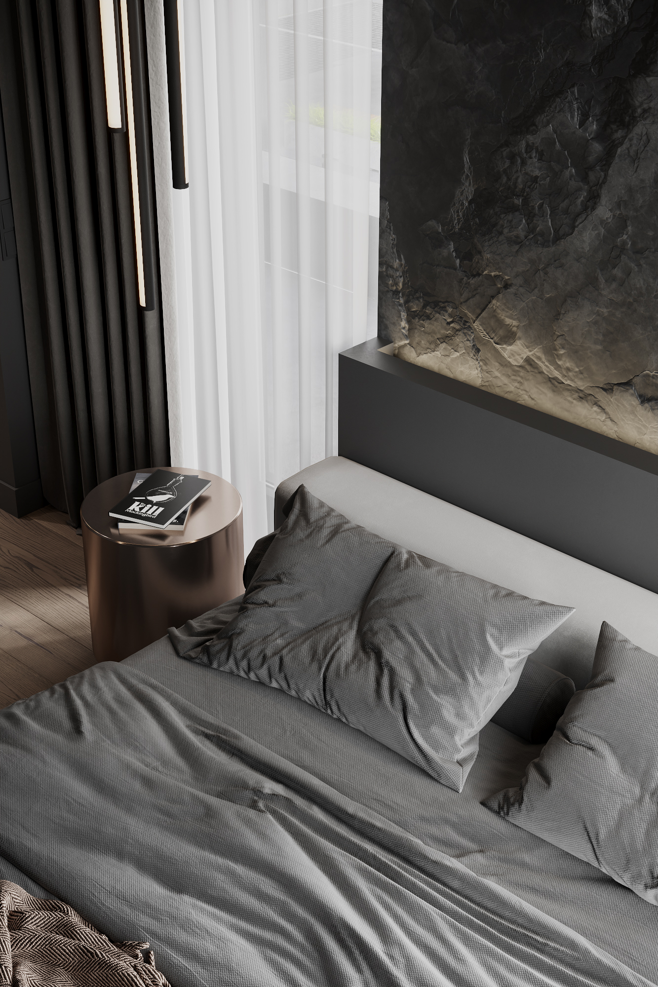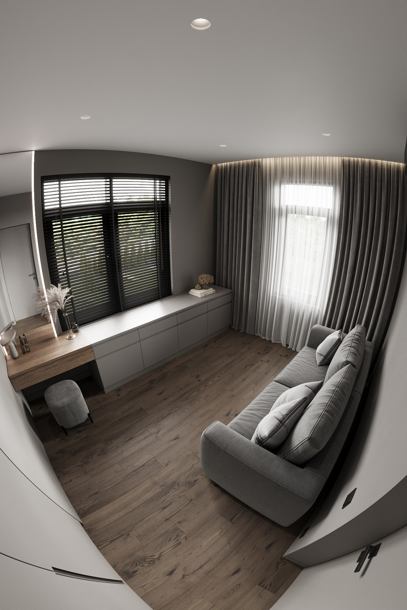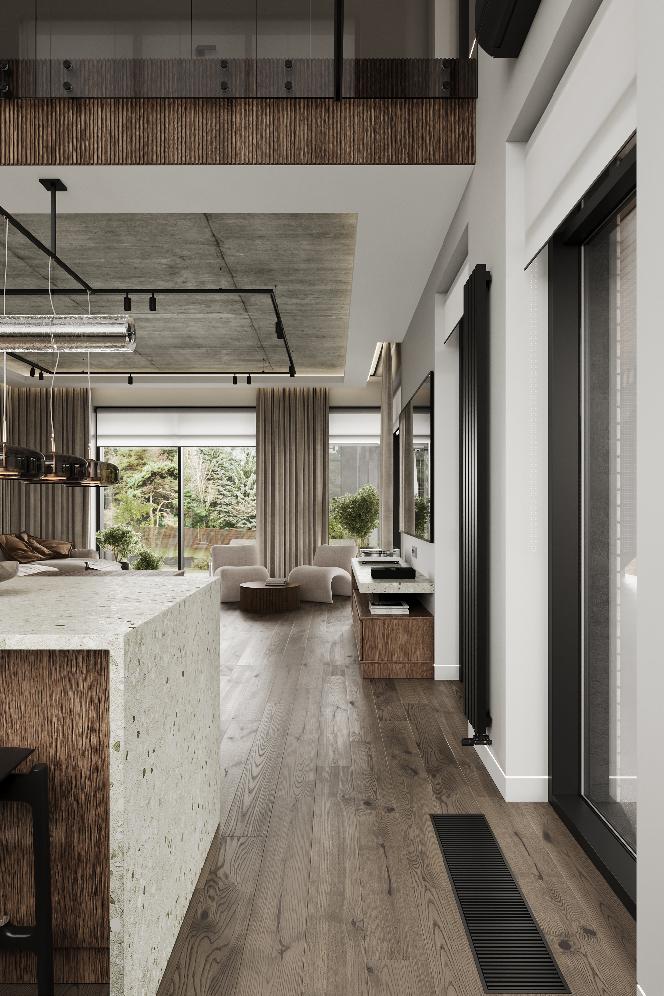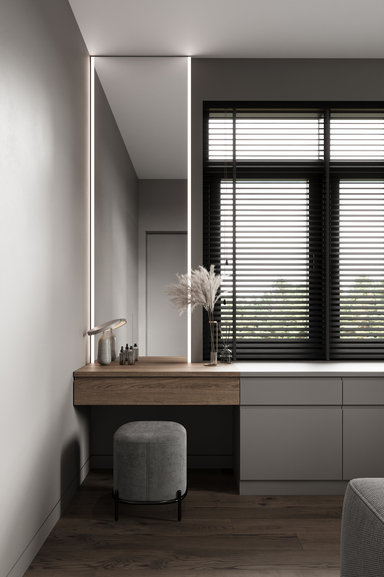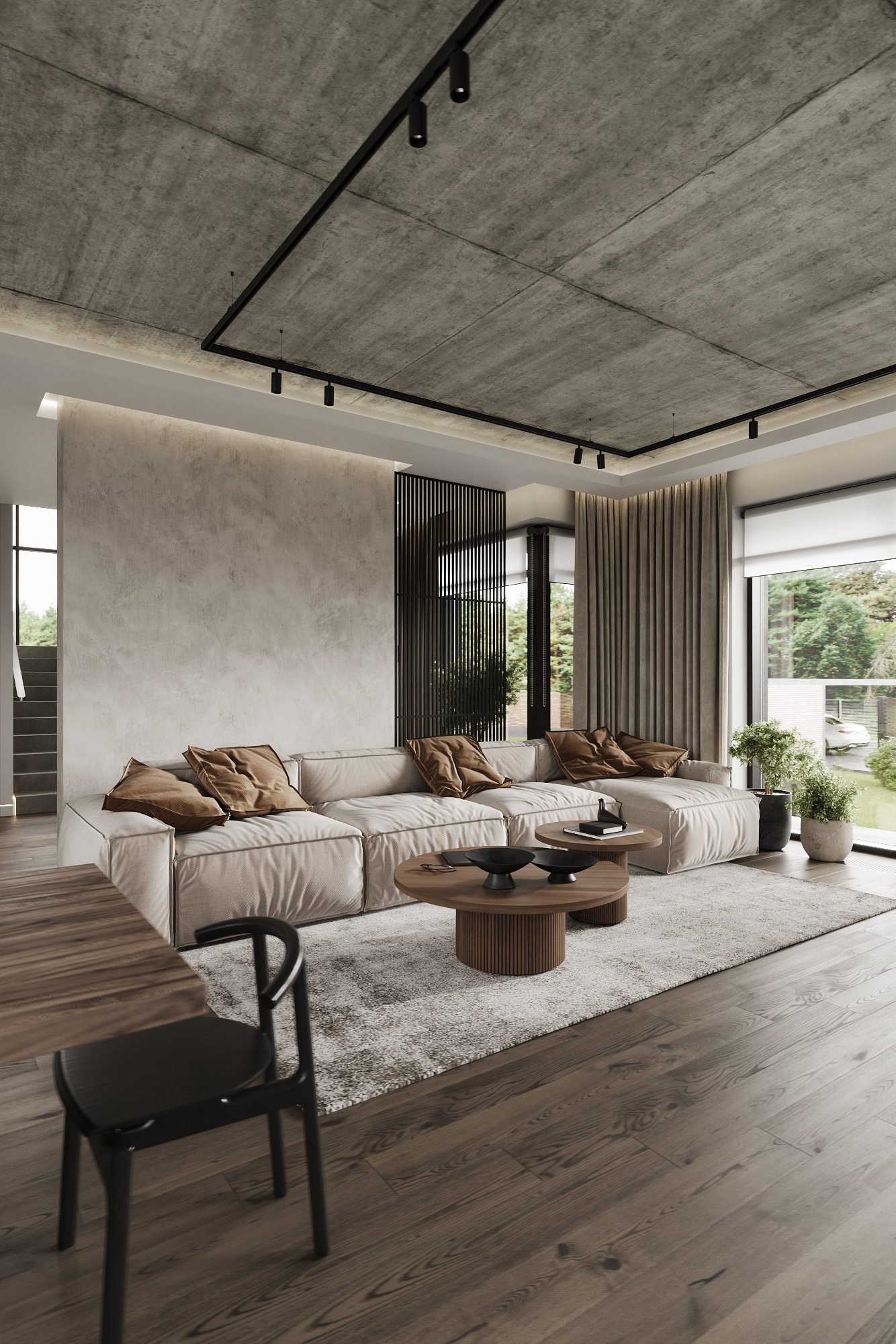 Строительство дома - это самый эффективный способ объединить интерьер с нужным вам окружающим ландшафтом и всеми красотами природы. Всего в часе езды от большого города реализовалась именно такая комбинация строгого минималистичного интерьера и ландшафта, имеющего небольшой естественный уклон, что придаёт рельефу участка комфортную визуальную динамику. Конфигурация дома включает в себя 180 кв.м., на которых расположилась большая кухня-гостиная со вторым светом, рабочий кабинет, две гардеробные, мастер-спальня, детская и гостевая комната.