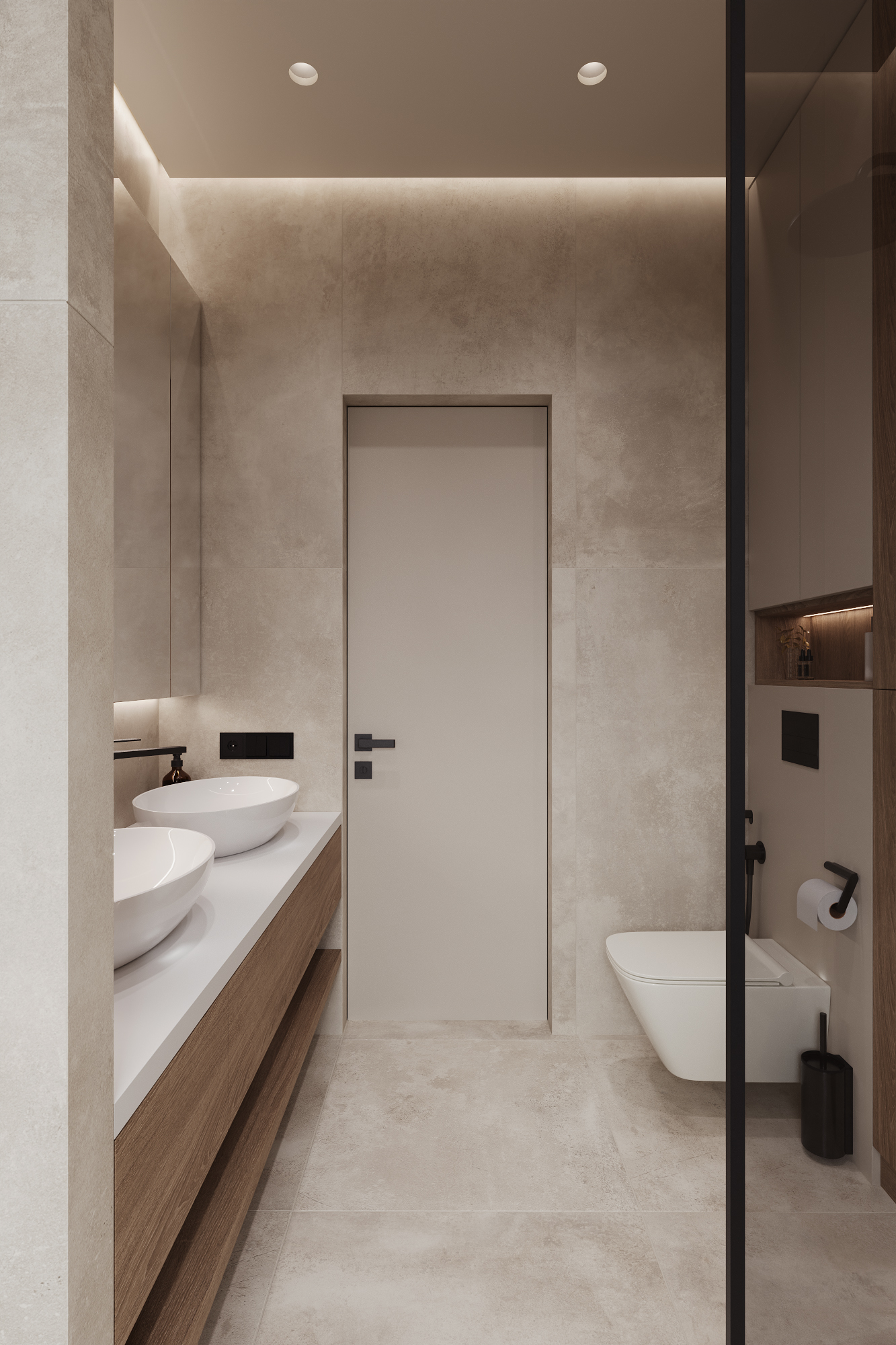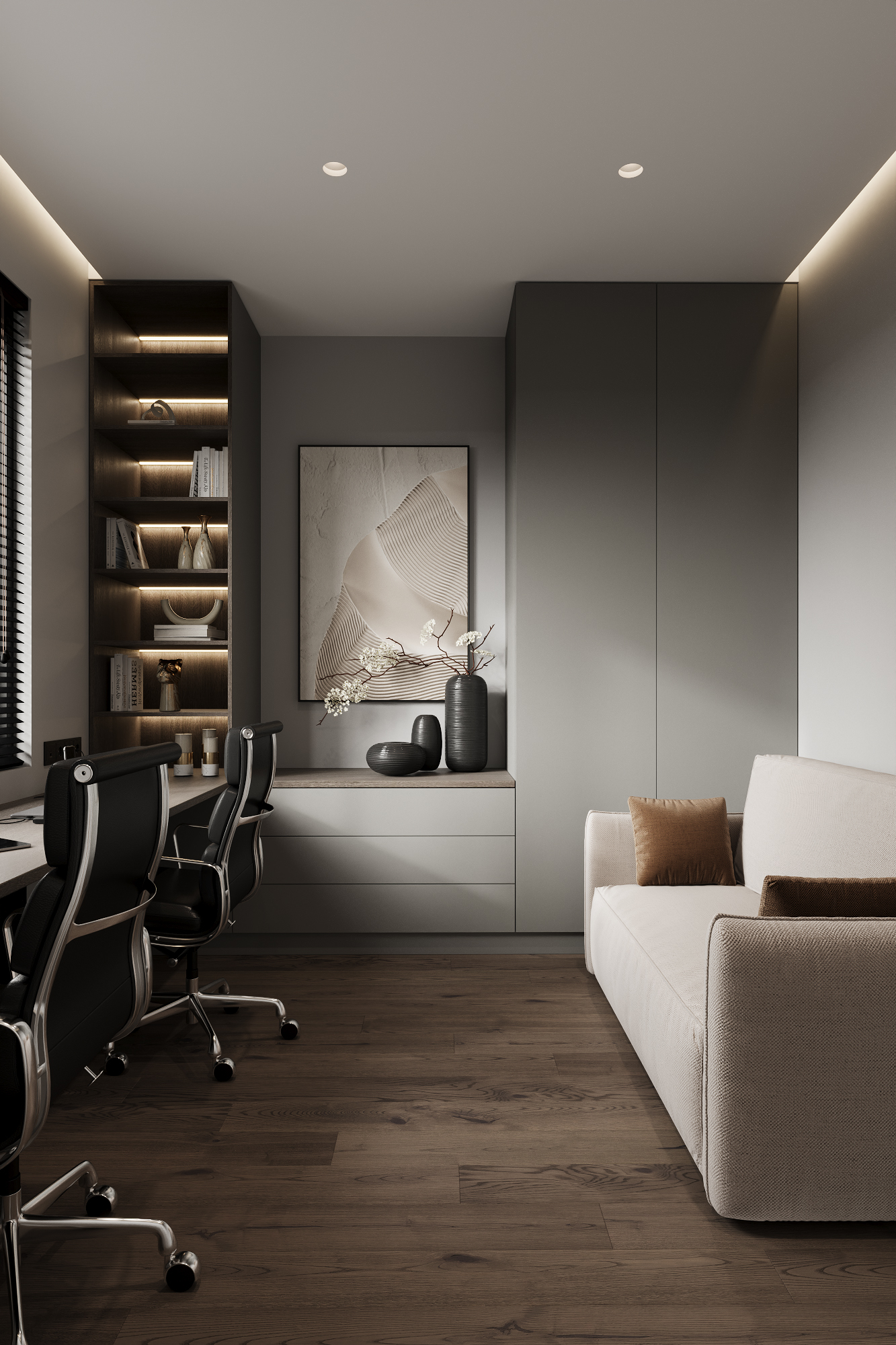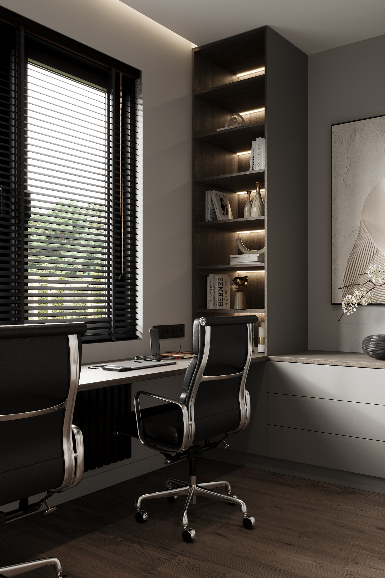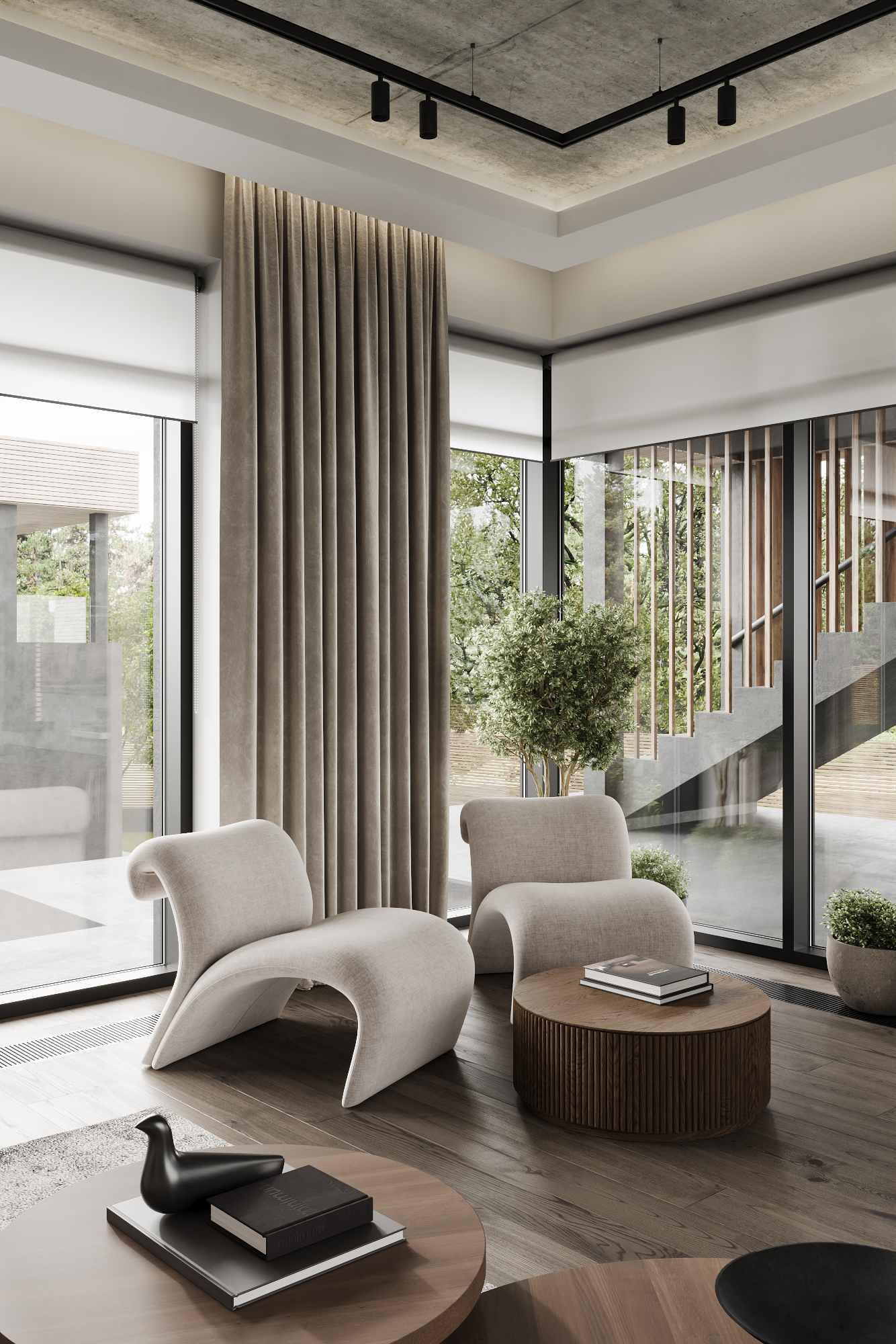 Строительство дома - это самый эффективный способ объединить интерьер с нужным вам окружающим ландшафтом и всеми красотами природы. Всего в часе езды от большого города реализовалась именно такая комбинация строгого минималистичного интерьера и ландшафта, имеющего небольшой естественный уклон, что придаёт рельефу участка комфортную визуальную динамику. Конфигурация дома включает в себя 180 кв.м., на которых расположилась большая кухня-гостиная со вторым светом, рабочий кабинет, две гардеробные, мастер-спальня, детская и гостевая комната.
